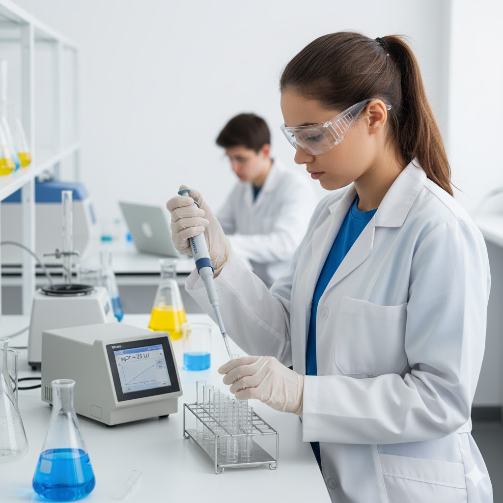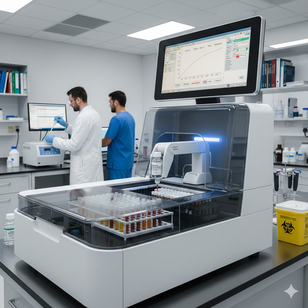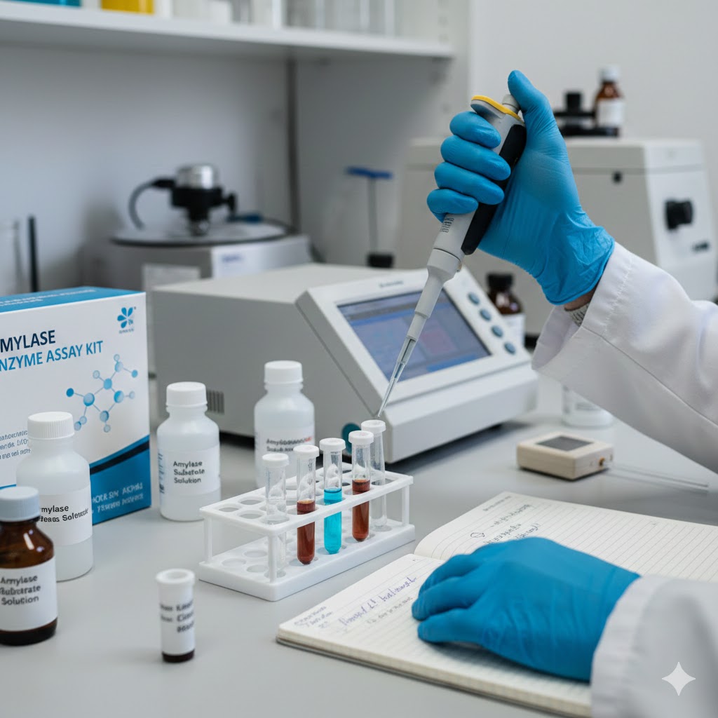 LIPASE Methyl Resorufin Method:- INTENDED USE: The reagent kit is intended for the in vitro quantitative determination of lipase in serum/plasma. PRINCIPLE: In the presence of colipase and bile acids, lipase splits the synthetic substrate (1,2-O-dilauryl-rac-glycero-3-glutaric acid 6-methylresorufin ester) to form lauric acid and methylresorufin. The rate of hydrolysis is measured photometrically and is proportional to the catalytic activity of lipase present in the sample. CONTENTS: Reagent 1: Lipase Reagent R1 Reagent 2: Lipase Reagent R2 Reagent 3: Lipase Calibrator SAMPLE: Serum or plasma with sodium citrate, EDTA, or heparin. PRECAUTION: To avoid contamination, use clean laboratory materials, use clear reagents and glassware. Avoid direct exposure of reagents to light. PROCEDURE: Pipette into clean dry test tubes labeled as Blank (B), Calibrator (C), and Test (T): Component Blank (B) Calibrator (C) Test (T) Reagent 1 1.0 ml 1.0 ml 1.0 ml Calibrator — 20 µl — Sample — — 20 µl Mix carefully (do not vortex). Incubate for 1–5 min at 37°C and read absorbance at 580 nm.Add Reagent 2: 250 µl to each tube, mix gently and read absorbance after exactly 120 sec (A2). CALCULATION: For kinetic:Lipase U/L = (ΔOD/min Sample / ΔOD/min Blank) × Calibrator Concentration For fixed time:Lipase U/L = (Abs (A2–A1) Sample / Abs (A2–A1) Calibrator) × Calibrator Concentration NORMAL RANGE: Up to 60 U/L(Each laboratory should establish its own normal range.) CLINICAL SIGNIFICANCE: Lipase is a pancreatic enzyme necessary for the absorption and digestion of nutrients. The deficiency of lipase or disorders of fat digestion may result in the abnormal digestion of fats and malabsorption. Clinical diagnosis necessitates the presence of pancreatic duct obstruction, acute pancreatitis, and other conditions. GENERAL SYSTEM PARAMETERS: Reaction type: Kinetic Reaction slope: Increasing Wavelength: 580 nm Cuvette: 1 cm Reaction temperature: 37°C Dead time: 60 sec No. of readings: 3 Sample volume: 20 µl Calibrator: 2 points Working reagent volume: 1.25 ml (1000 + 250) Blank: Reagent Assay procedure: 1 cm light path LINEARITY: Up to 300 U/L. If activity is greater than 300 U/L, dilute the sample with normal saline and repeat the assay. Multiply result by dilution factor.