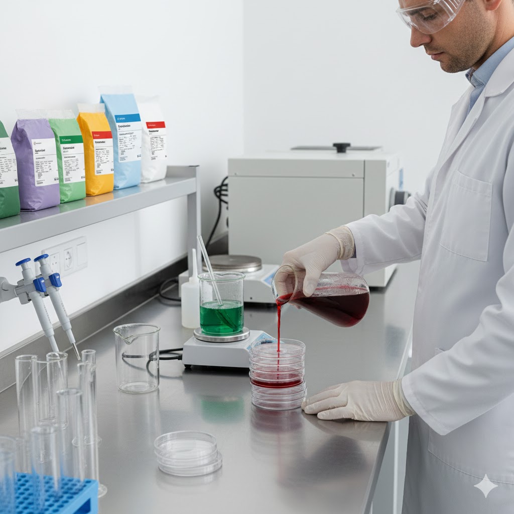 6.Storage of culture media: Dehydrated culture media and dry ingredients (agars, peptones, bile salts, etc.) can be stored at room temperature (25°C ± 5°C) in a cool and dry place, away from direct light. Additives such as blood, serum, urea and carbohydrates in solution form are stored at 2-8°C in the refrigerator.